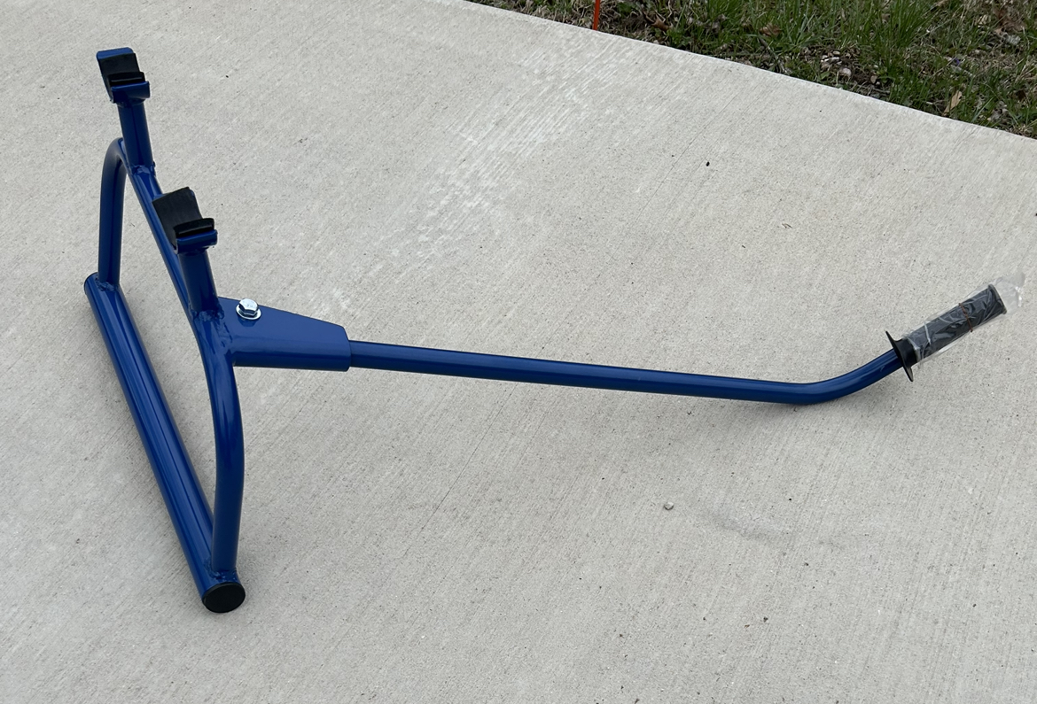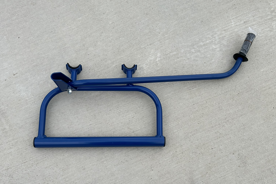 This is a reproduction of the original bike stands that came with the Models 97 & 98. These are powdercoated blue with new hardware and Factory Hodaka Grip
